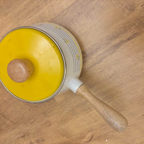 Ugnsform med lock i vit och röd färg. Formen har handtag på sidorna och ett runt lock med litet ånghål. Passar för tillagning och servering av mat i ugn eller på bordet.Tung troligtvis kockum