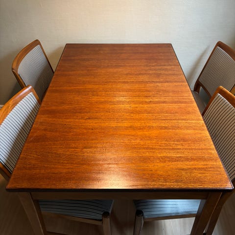 Teakbord i bra skick förutom två repor vid en hörnet (se bild).