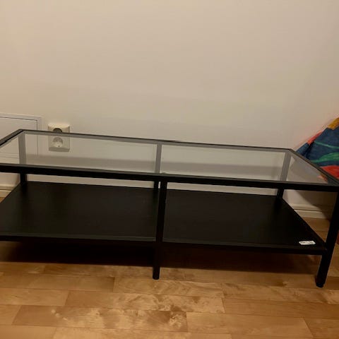 Selling an IKEA VITTSJÖ TV bench in black-brown metal with a tempered-glass middle shelf. Minimal, airy design with open storage—great for a TV plus devices such as a console, router, or set-top box.