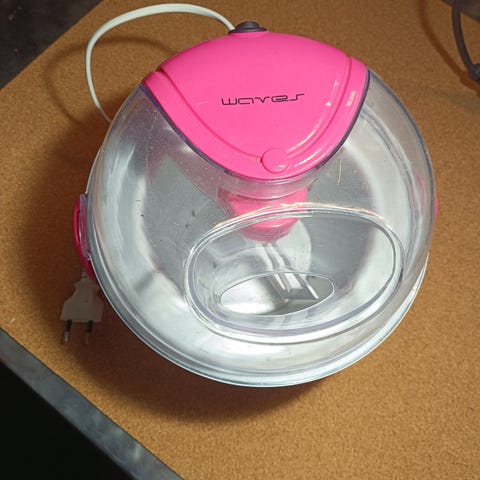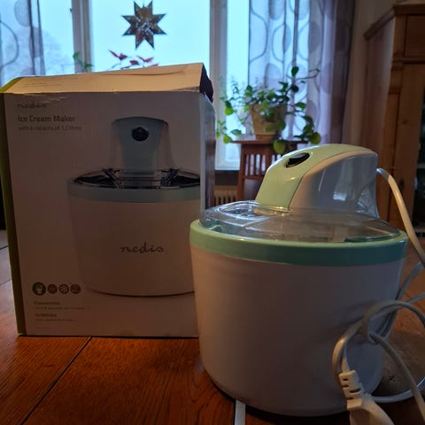 Chill Factor glassmaskin för hemmabruk. Produkten används för att göra glass på ett enkelt sätt utan behov av el. Består av flera delar i plast och är enkel att använda för att snabbt frysa glassmassan.