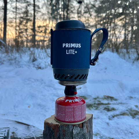Innehåller två 1-liters kittlar, stekpanna och vindskydd.
