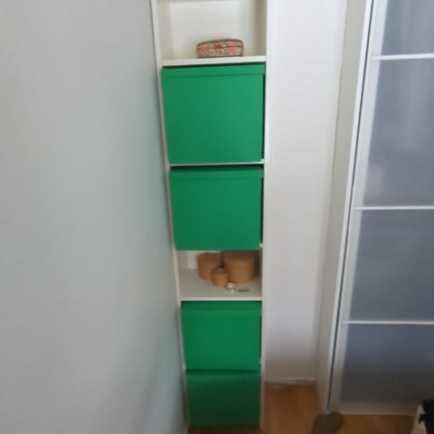 Två lite omgjorda billy bokhyllor. De är ej målade på långsidorna mot varandra, samt att de finns skruvhål där, se bilderna.