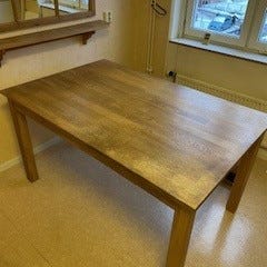 Säljer ett rejält och stilrent matbord i massiv ek, perfekt för både vardag och middagar med gäster.