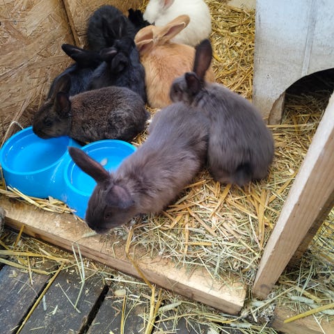 Våra kaniner söker ett nytt hem. De är båda snart 3 år gamla. Maskros är beige, Lesley är grå. Lesley är kastrerad, inte Maskros. De bor utomhus året om.