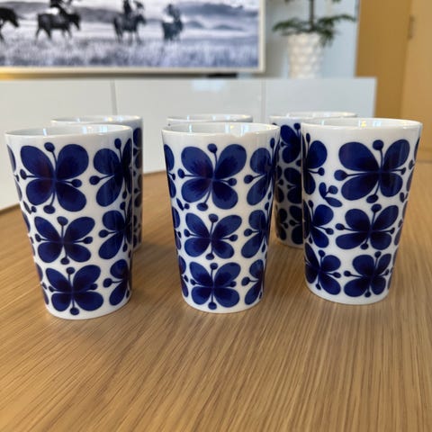6 st Rörstrand Mon Amie tekoppar. Setet inkluderar koppar och fat samt tekanna och stor kanna.