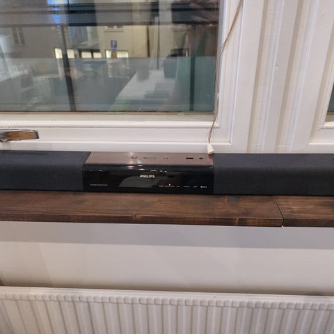 Komplett med fjärrkontroll, originalmanual och samtliga sladdar för anslutning av högtalarna.