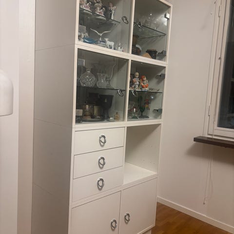 Glashyllor och ”egengjord belysning ” , lite sladdar på baksida.