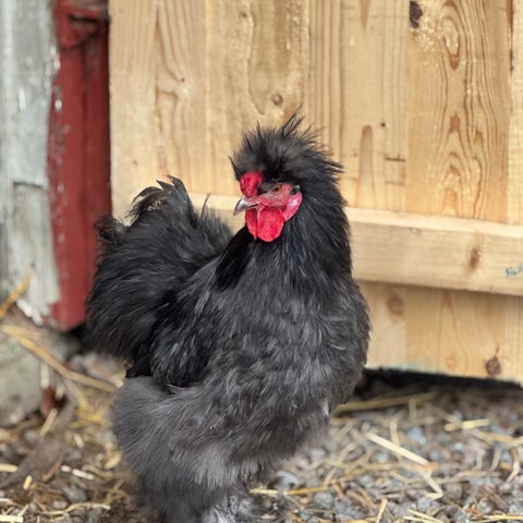 Finns även en höna som kan flytta ihop med en tupp, kommer börja värpa till våren.