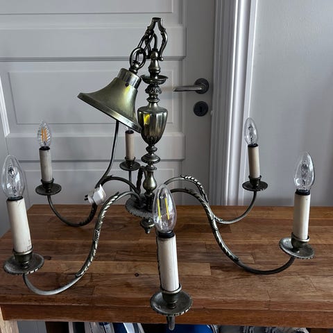 Vintage takkrona i mässing för levande ljus. Mycket bra skick.