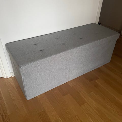 Säljer min ljusgrå sittbänk pga flytt, har använt den till förvaring av skor men har tvättat ur den.