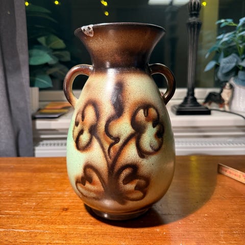 Bruksskick med tydliga bruksspår på insidan och undertill, vilket framgår av bilderna. Hel och stabil, inget som påverkar funktionen. Passar bra som förvaringsburk eller dekorativ inredningsdetalj.