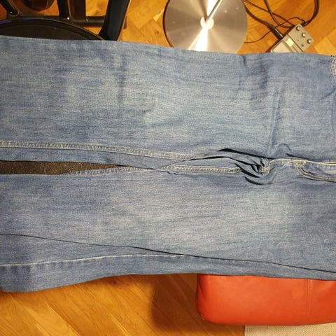 Blåa jeans i storlek 34/32, skriv vid eventuella frågor.