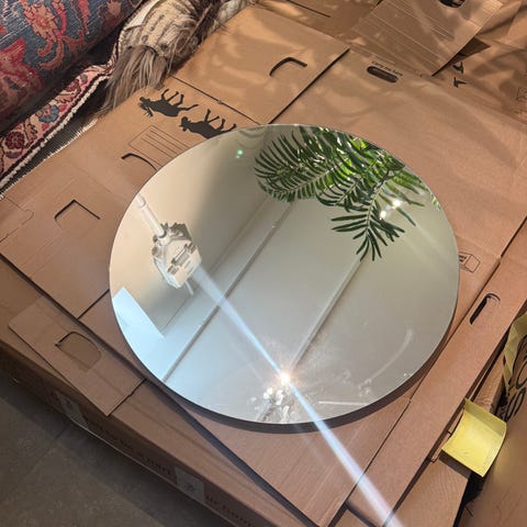 Ny, men har skadats under frakt i det nedre högra hörnet. Skadan är knappt 1 cm.