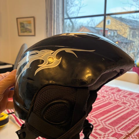 Välisolerad, säker slalomhjälm med luftintag. I stort sett oanvänd.