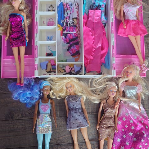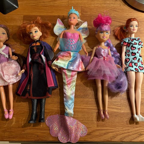 Ett paket dockor av olika slag. Barbie, Frost och en från enhörningsakademin tror jag. 😊