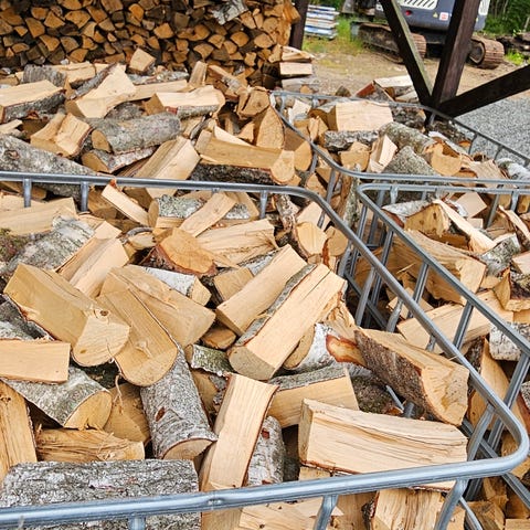 Björkved 30cm. Fukthalt 18-22% Ligger luftigt under tak. Behöver tas in 5-6 dagar i rumstemperatur innan eldning.