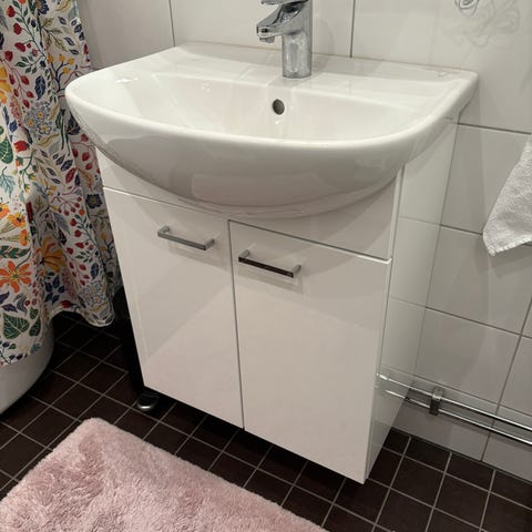 Vi fick en ny på garantin, men bytte aldrig så den här bara står. Helt ny och komplett men utan emballage. Märk väl att det bara är 1! 80 cm bred!