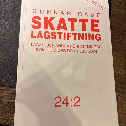 Kurslitteratur: skatte lagstiftning 25:1 av Gunnar Rabe, finns några få noteringar i boken💕