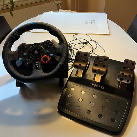 Logitech G29 Racinghjul. Utrustad med tre pedaler för gas, broms och koppling. Passar för racing- och bilsimulatorer. Ps5, ps4 och PC.