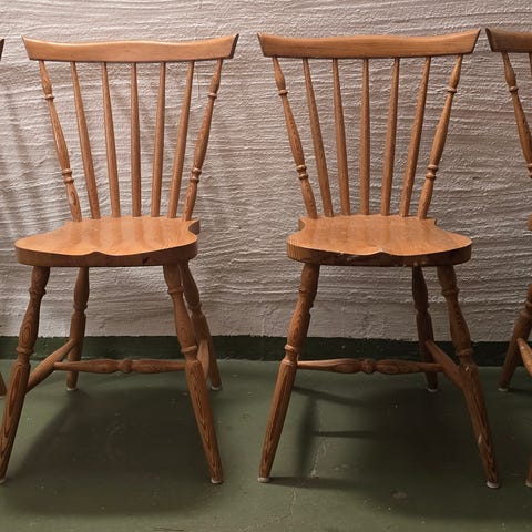 Gedigna, stabila och rejäla. Inga lösa pinnar, glapp eller annat gnissel. Pinnstolar av riktigt god kvalitet!