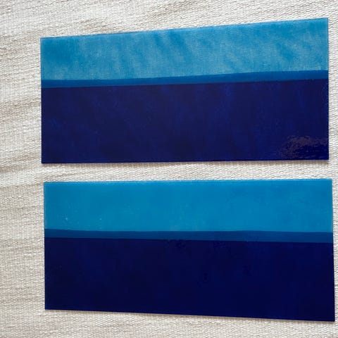 Ett par IKEA ”Lyrik” vägglampor i art deco-stil. Bägge nyligen genomgångna och har fått ny el dragen. Den ena har missfärgningar på plåten samt målarfärgsrester på baksidan, och en spricka/lagning nertill på glaskupan. Tack vare reliefmönstret syns denna inte så tydligt, anser inte den påverkar helhetsintrycket men studera bilderna och avgör själva.
