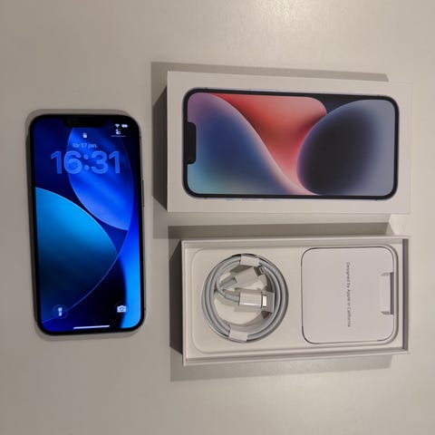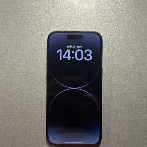 Apple iPhone 14 Pro mobiltelefon med 128 GB lagringsutrymme. Telefonen har en skärm med hög upplösning och flera kameror på baksidan för fotografering och video. Enheten är designad för att användas med iOS och har stöd för trådlös anslutning och appar. Ändå nackdelen är sprickan annars funkar den som ny.