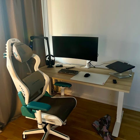 DXRacer gamingstol (inga extra kuddar), men med ett extra set nya hjul