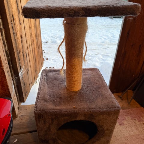 En kattrappa till balkong. Stabil. Såga av om du inte bor lika högt upp som vi.