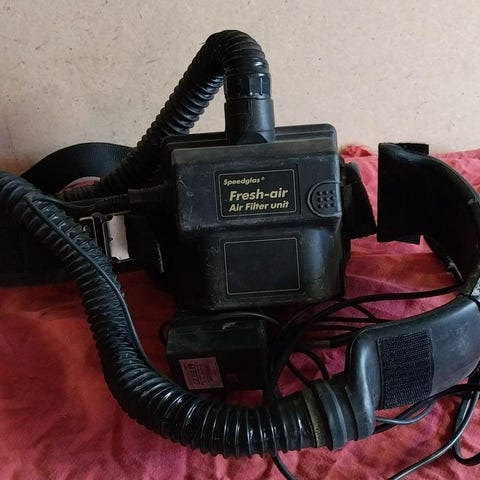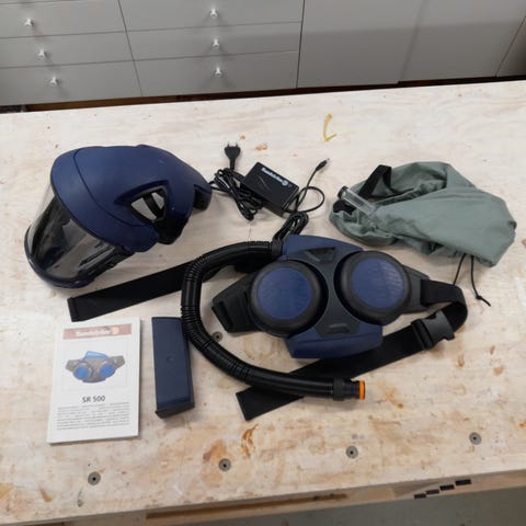 Detta är en Sundström SR 500, en fläktassisterad andningsskyddsenhet.