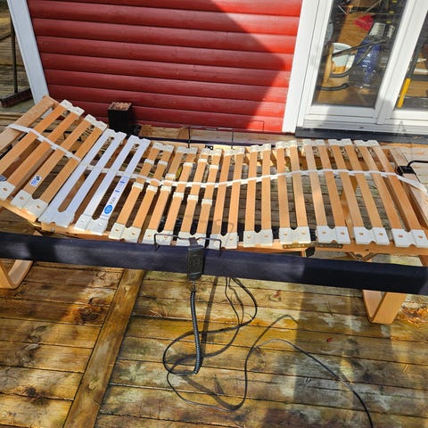 Fullt fungerande ställbar säng med Linak motor. Sängmått: 105 cm x 200 cm. Madrass med fläckar på undersida. I övrigt i fint skick. Leverans kan ordnas mellan Ystad & Malmö till självkostnadspris. Annars gäller avhämtning strax utanför Anderslöv.