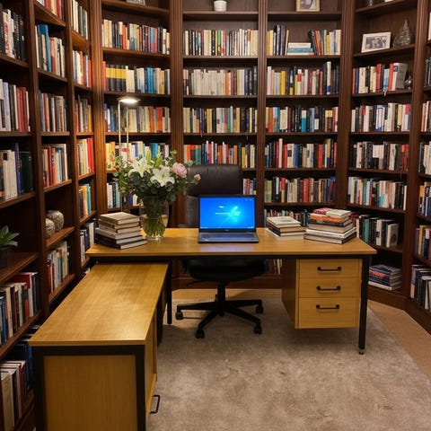 Skrivbord och förvaringsmöbler i trä och metall