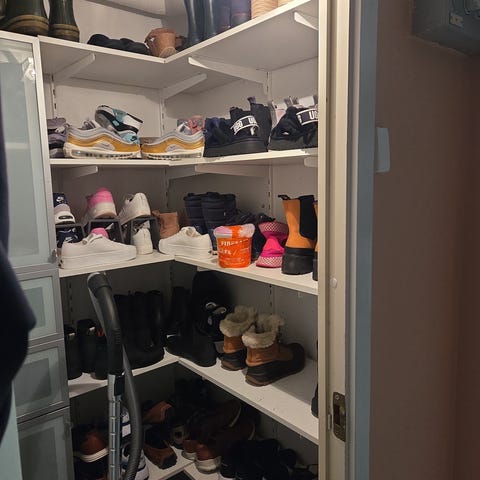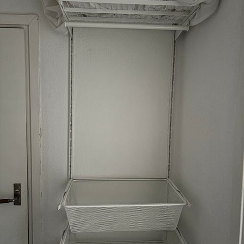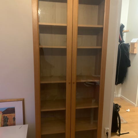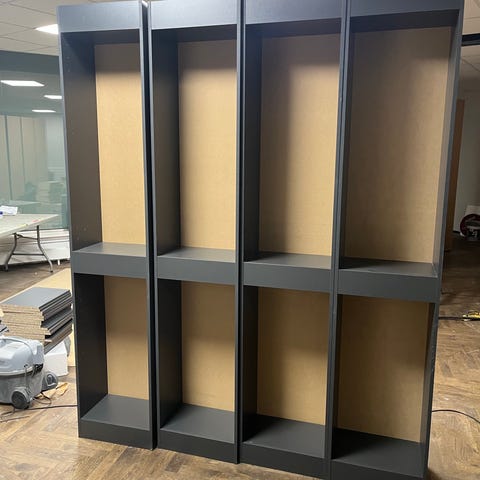 Hyllplanen har kapats och har suttit in mot en vägg. Därför ser de avskurna ut på andra sidan. Det är den vänstra sidan sett framifrån