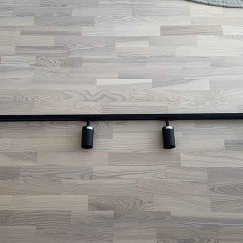 Det är en smal och smidig skena som består av två delar (totalt 6 stycken spotlights). Lamporna är dimbara och ger ett mycket bra ljus. Systemet är känt för sin höga kvalitet och stilrena design.