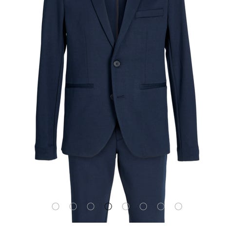 Det visade sig att kavajen satt perfekt men 128 byxorna var för små. Turligt nog fick vi köpa olika storlekar på kavaj och byxor.