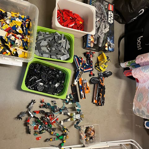 Stor samling Lego i för det mesta mycket fint skick, många kompletta byggen o de flesta går nog att komplettera med bitar från lös legot som ingår. 1600kr