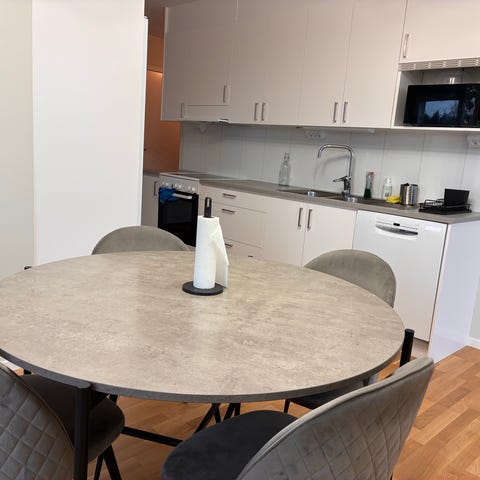 Köksbord oval 160cm, 4 stolar