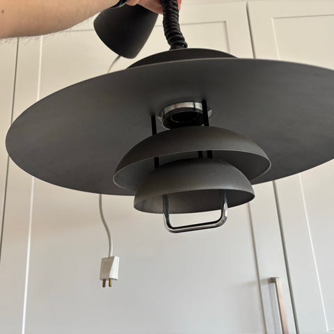 Lampan är i fint bruksskick. Det finns några mindre repor på ovansidan, men dessa syns inte när lampan hänger i taket.