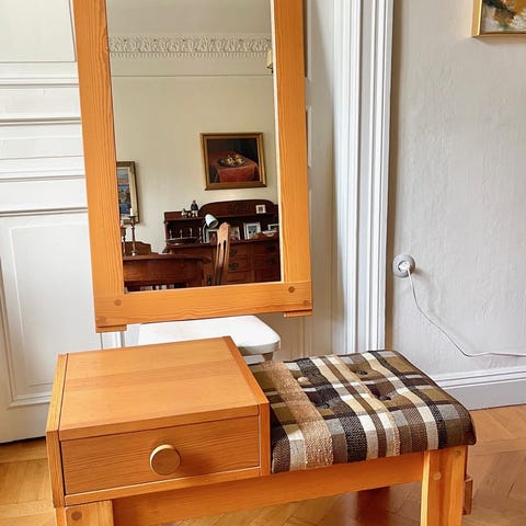 Så kallat målarstege/pall med fin naturlig patina som lite målarstänk, 1990-tal. Träslag björk. Går att stå på men en aning ranglig- går att dra åt. Säljs till högstbjudande. Endast avhämtning.