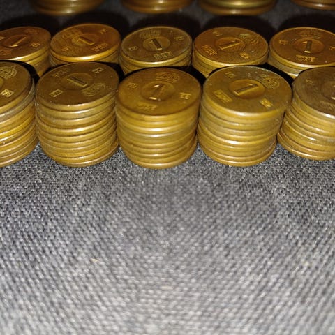 100 stycken Svenska 5 öre mynt i olika utgåvor och årtal. Mynten är av metall och används som samlarobjekt eller för historisk referens.
