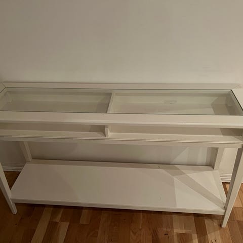 Säljer min skänk Liatorp. Bra skicka med några få skavanker på kanter på bänkskivan. Har satt på folie på glasen men det tas enkelt bort. Alla hyllor osv som Original. Upphämtas i Jakobsberg. Säljes pga flytt. Djup 49 cm Bredd 145 cm