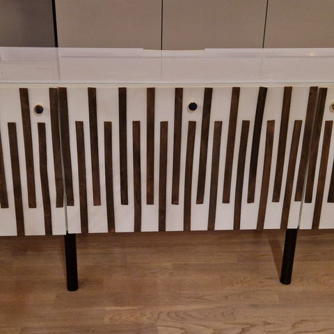 Tv-bänkarna BESTÅ i superfint skick kombinerar snyggt, samtida utseende med praktisk funktion. Du får massor av förvaringsutrymme och slipper trassliga kablar som samlar damm, går att fästa på väggen