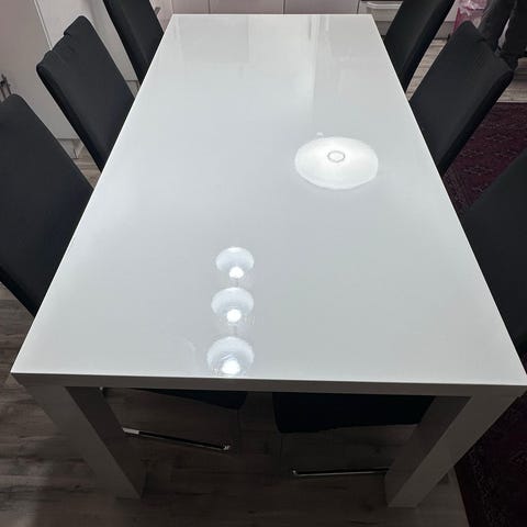 Möblerna är i mycket gott skick, utan större repor eller skador. Passar perfekt för kök eller matplats.
