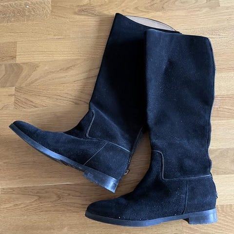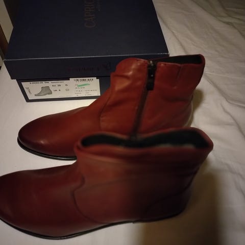 Så fina och så sköna vintage stövletter i mocka och läder från tyska kvalitetsmärket Caprice. De har mjukt dämpande sulor och är fodrade med ett tunt silkesmjukt foder. Storlek 6 1/2 = 40. Innermått 26,2 cm. Rekommenderar dem varmt.