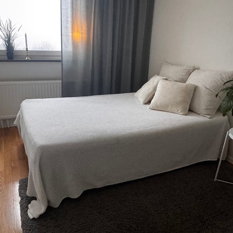 Jag säljer min 120-säng då jag nyligen inköpt en större. Den är i gott skick, det enda som behövs nämnas är att en av sängbenen är fastlimmat och går ej att ta av. Madrass, madrasskydd och sänggavel ingår.
