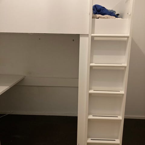 Vi säljer vår loftsäng med skrivbord från Ikea.