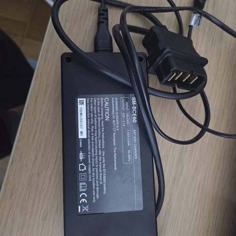 Ninebot Batteriladdare med utgång på 41.1V och 1.7A. Den är avsedd för laddning av Ninebot-enheter och har en standardkontakt för anslutning. Produkten är svart och tillverkad för att användas med kompatibla elektriska transportmedel från Ninebot.