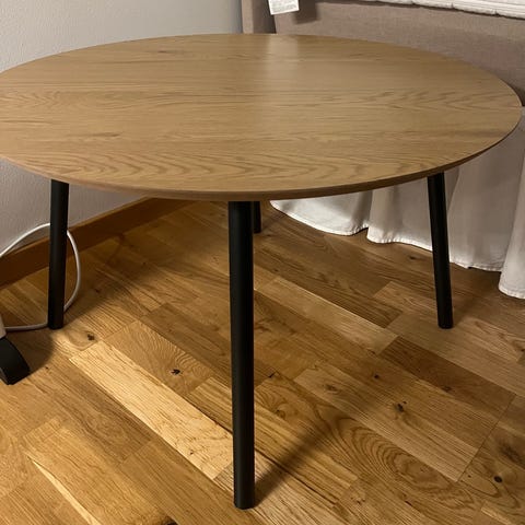 Ett hemmagjort soffbord och två loungestolar. Stolarna är från Jysk tror jag och kostade ca. 400kr nypris. Mått på bordet 85 runt & 47 högt. Bordet 1000kr, stolarna 300kr/st. Allt tillsammans 1400kr.