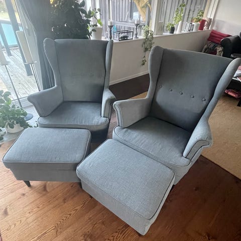 2 st fåtöljer från IKEA, Strandmon i grönt tyg