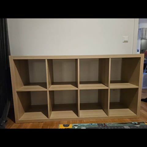 Hylla från IKEA:s KALLAX-serie i vit färg med vitt underrede. Plats för 12 insatser. Passar bra i vardagsrum, sovrum, kontor eller som rumsavdelare.