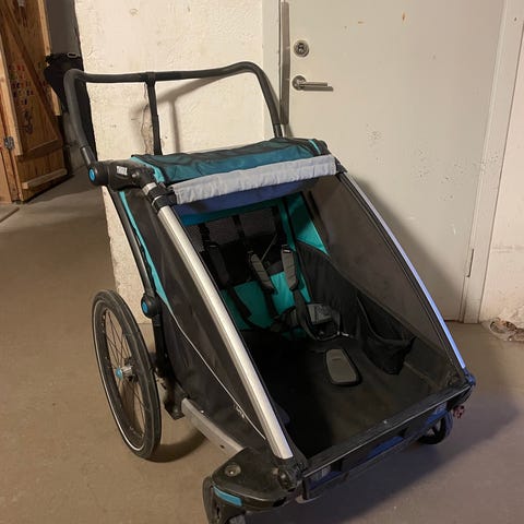 Thule Urban Glide 3 barnvagn i blå färg. Barnvagnen har en robust design med tre hjul och är lämpad för både stadsmiljö och terräng. Den har en justerbar sufflett och ett rymligt sittutrymme. Passar för barn och erbjuder god komfort och säkerhet under promenader.